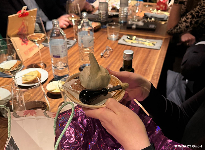 Everyone was treated to a delicious menu that included both vegan and meat options. The creamy burrata and tender cod with beetroot were particularly popular and perfectly matched the festive mood. The menu was rounded off with a wintery dessert – a choice of speculoos with chocolate, cherry and hazelnut or a refreshing apple sorbet.