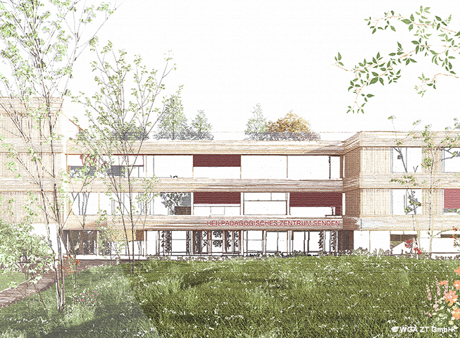 Given the increase in both the number of users and the technical requirements, building a new, accessible special education centre in Senden has become essential. At the core of the project is a new building that not only offers a functional and structured use of space but also makes an active contribution to being climate neutral. The goal is to create a sustainable building that meets the highest standards in every aspect – socially, environmentally and economically.