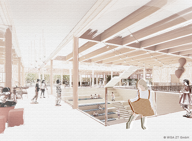 Using timber as a façade material additionally emphasises sustainable architecture and creates a natural environment. Complementary roof and façade greening contributes to improving the microclimate.