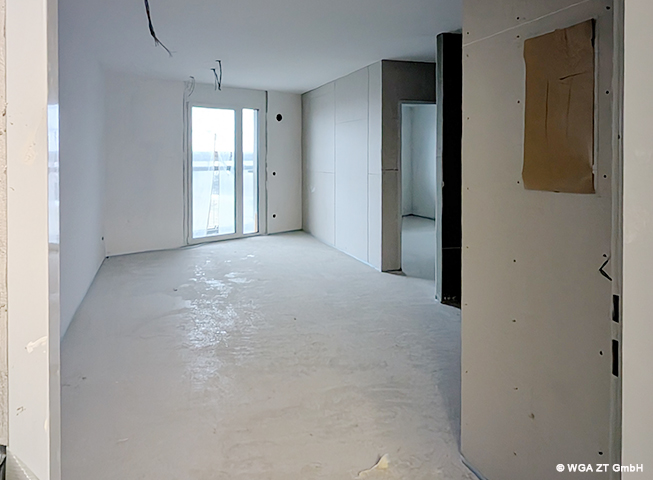 Im Bauteil A wird derzeit geschossweise in den Wohneinheiten der Estrich eingebracht. Dies erfolgt, sobald die Trockenbauwände vollständig gestellt, die Türzargen montiert und die elektro- sowie haustechnischen Installationen pro Wohneinheit abgeschlossen sind. Auch der Aufzug ist in diesem Bauteil bereits … Weiterlesen